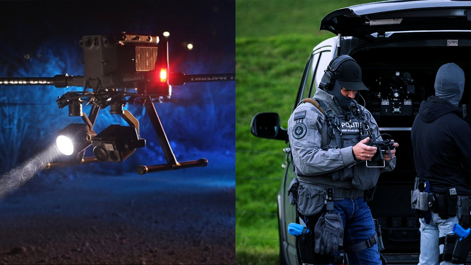 The drone's police lights and searchlight system is used to track and film suspects/vehicles, and to assist ground operations in making arrests.